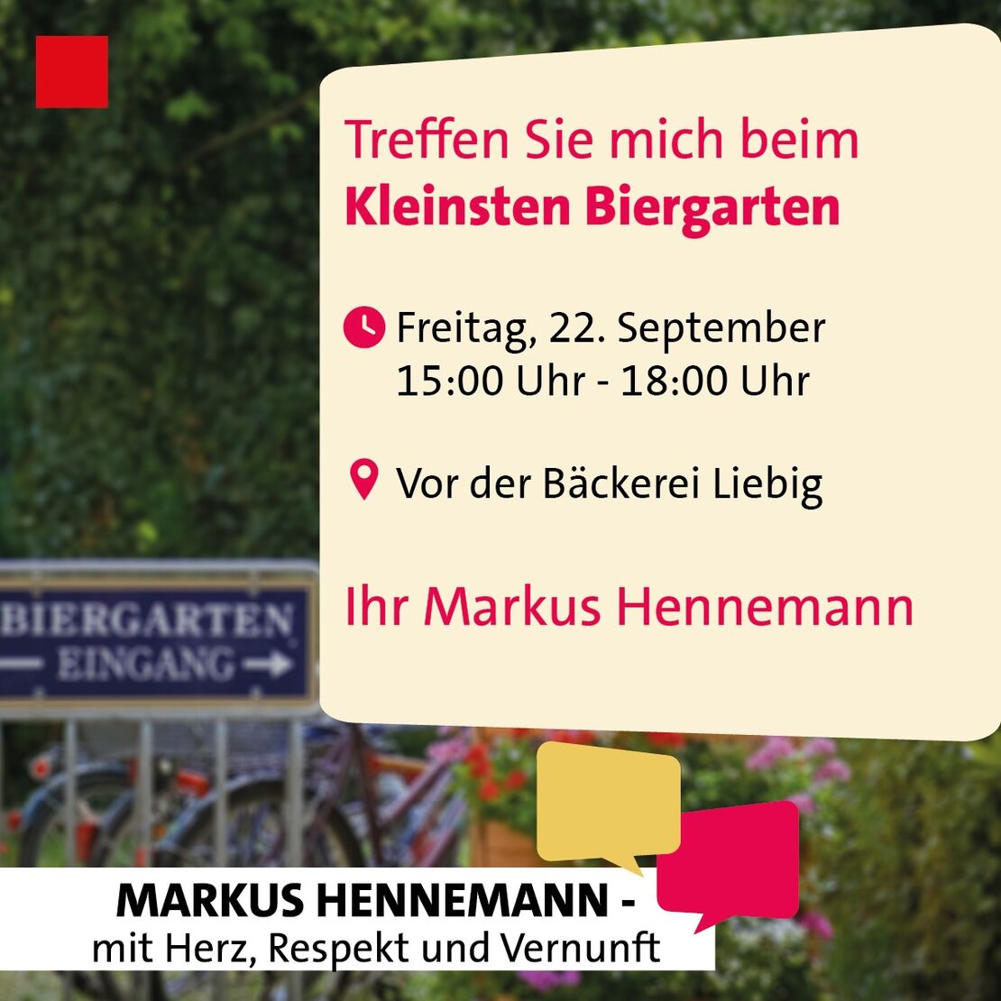 Treffen Sie unseren Bürgermeister Markus Hennemann zum Gespräch im kleinsten Biergarten Bickenbachs.