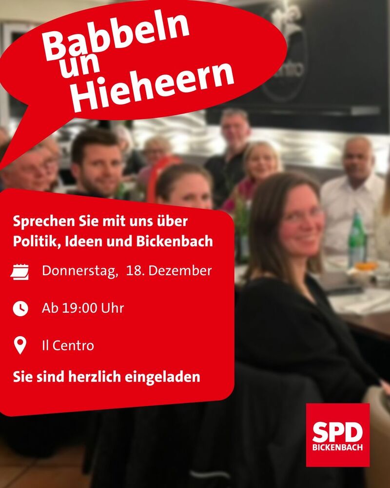 Sie sind herzlich eingeladen, dort mit uns über die Politik in Bickenbach und darüber hinaus ins Gespräch zu kommen.