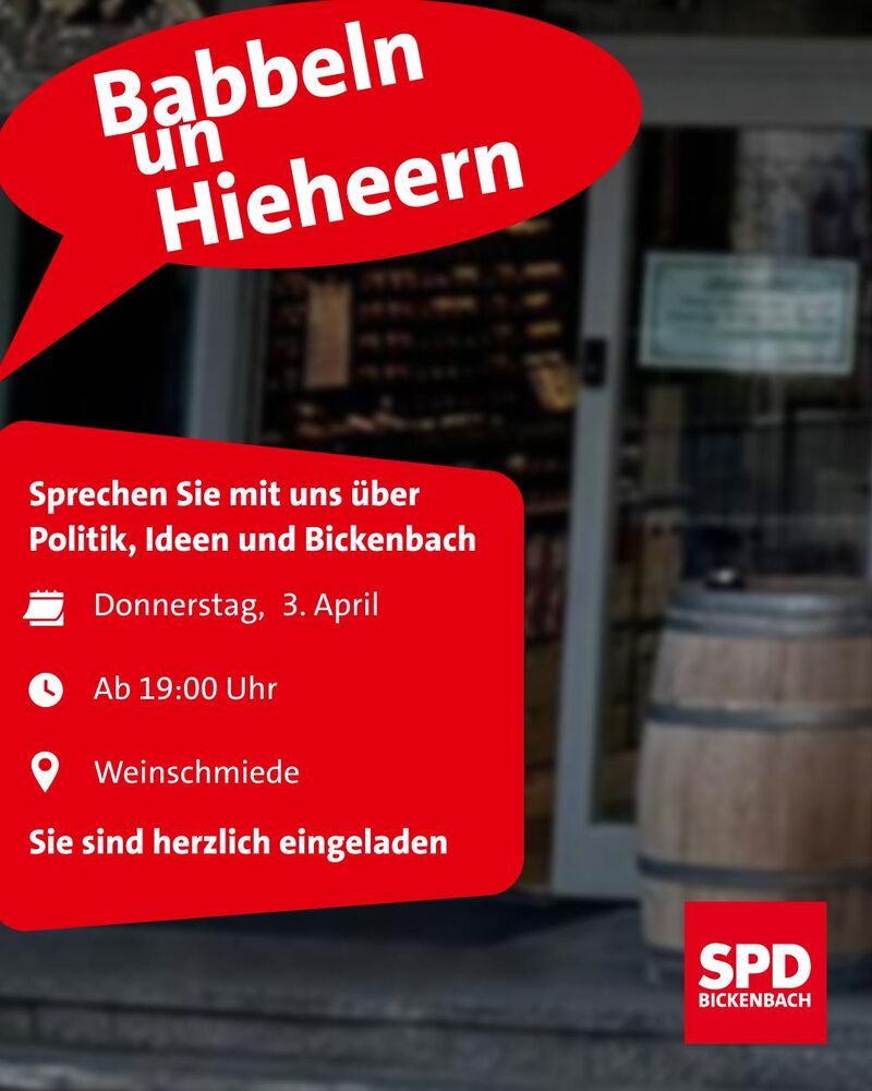 Sie sind herzlich eingeladen, dort mit uns über die Politik in Bickenbach und darüber hinaus ins Gespräch zu kommen.