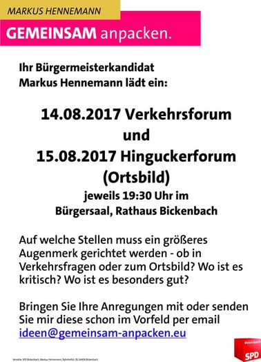 Einladung zum Verkehrsforum und zum Hinguckerforum