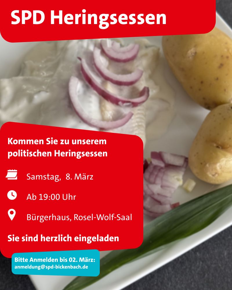 Wir bitten um eine Anmeldung bis zum 02.03.2025 bei anmeldung@spd-bickenbach.de