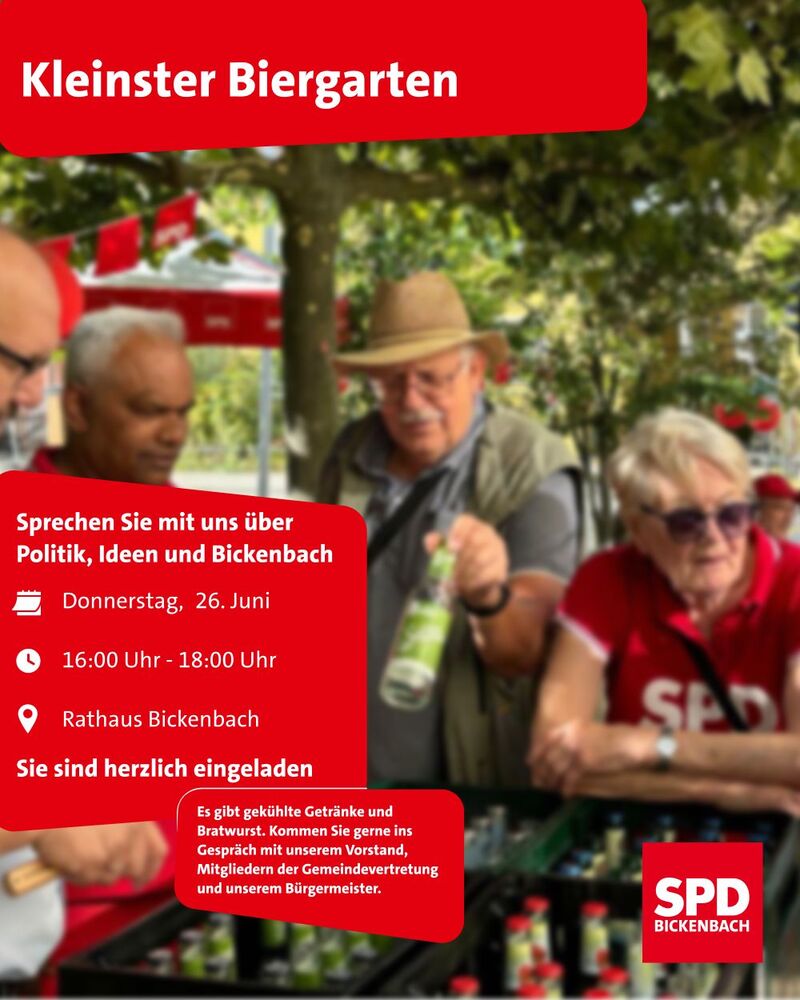 Am Donnerstag, den 26. Juni 2025, von 16:00 bis 18:00 Uhr vor dem Bickenbacher Rathaus.