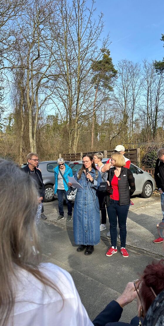 Besonders bewegend wurde es in der Schulstraße. Dort berichtete Emma-Sophie Stanzel über das Schicksal von Settchen Wolf, die dort mit ihrer Familie lebte und 1942 von den Nationalsozialisten in Minsk ermordet wurde. Dieser Teil des Spaziergangs machte deutlich, dass Ortsgeschichte nicht nur von Aufbau und Fortschritt erzählt, sondern auch von Verfolgung, Entrechtung und unermesslichem Leid. Die Erinnerung an Settchen Wolf gab dem Rundgang einen stillen, nachdenklichen Moment.