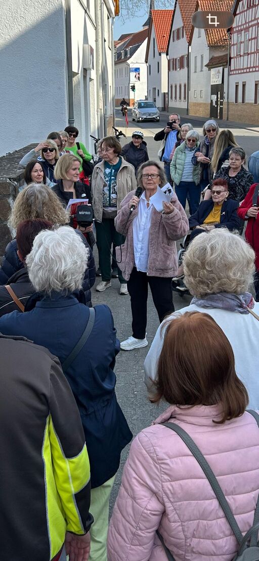 Auftakt des Rundgangs war am Bickenbacher Rathaus, wo die Vorsitzende Angelika Benz die Gäste begrüßte. Schon dabei machte sie deutlich, worum es an diesem Nachmittag ging: darum, Frauen sichtbar zu machen, die das Leben in Bickenbach mitgeprägt haben, deren Geschichten aber oft nur noch wenigen bekannt sind.