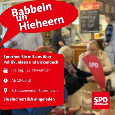 Anmeldungen bitte per E-Mail an anmeldung@spd-bickenbach.de