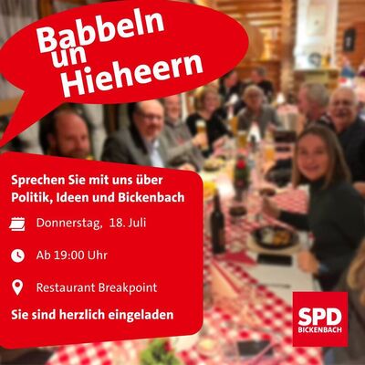 Sie sind herzlich eingeladen, dort mit uns über die Politik in Bickenbach und darüber hinaus ins Gespräch zu kommen.