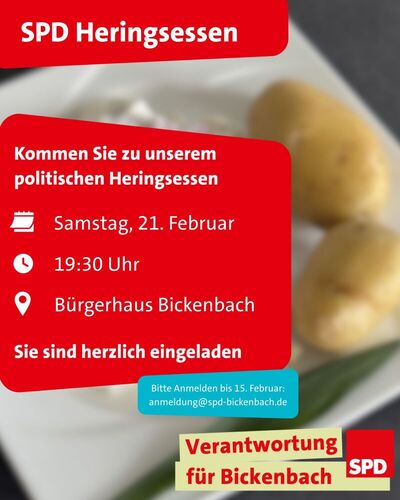 Bitte melden Sie sich per E-Mail an, damit wir für alle genug Heringe da haben: anmeldung@spd-bickenbach.de